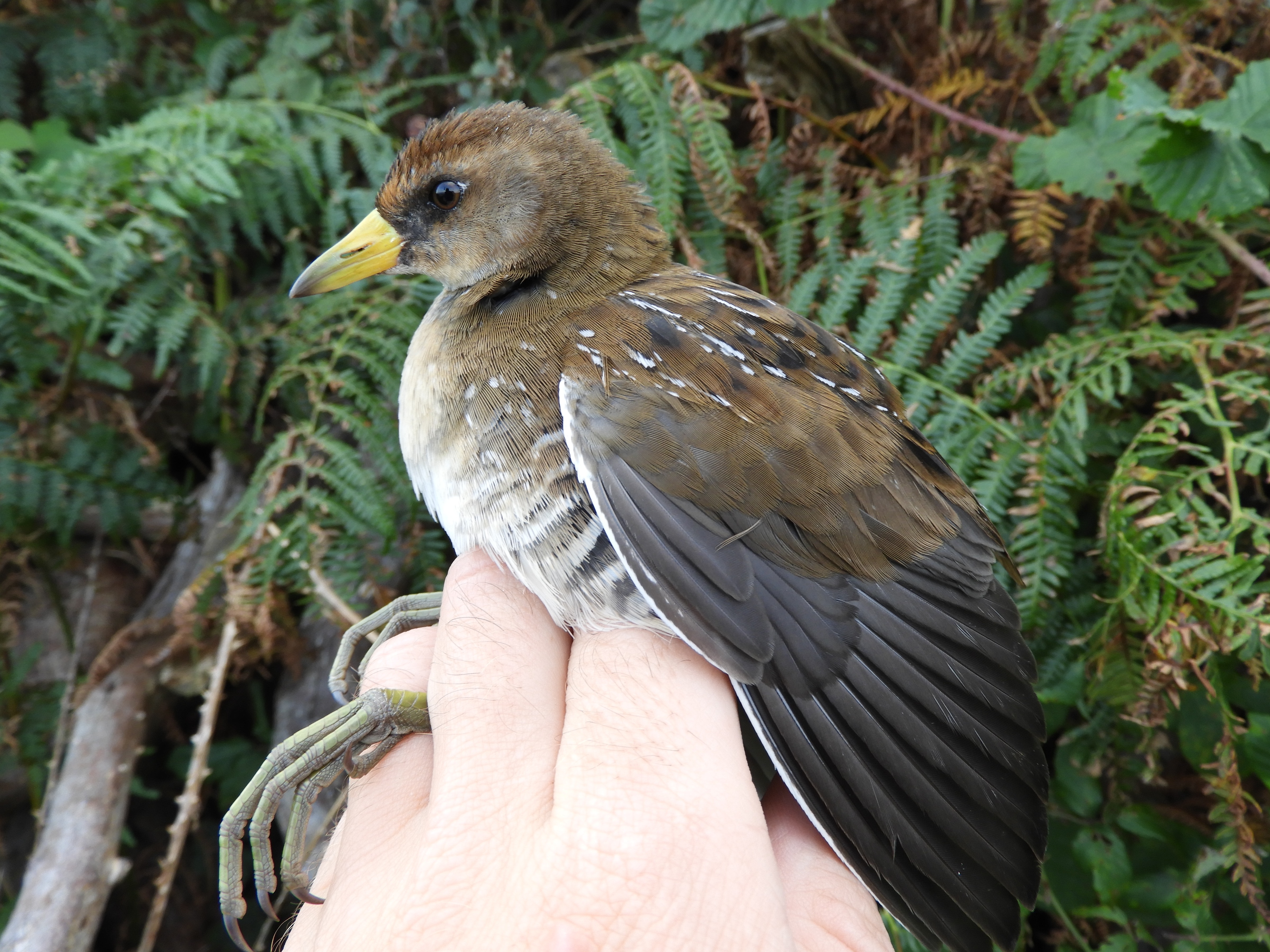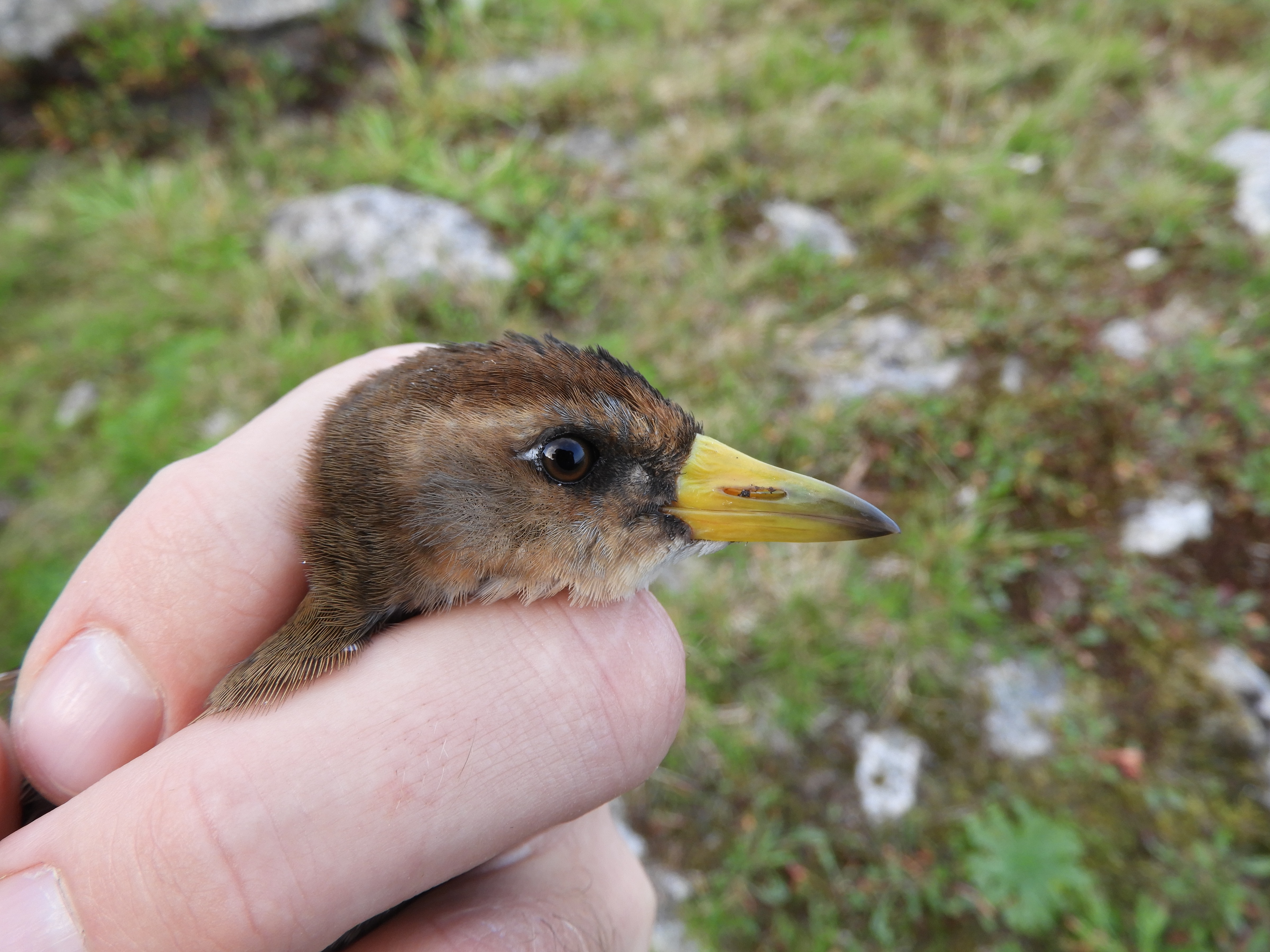 Young were heard calling in lower Millcombe on 24 & 29 Apr, providing confirmation of successful breeding on the island for the fifth successive year. On 2 May, Richard Campey saw/heard an adult with at least one calling chick in lower Millcombe, a calling chick near Brambles, an adult with at least one chick at Pondsbury, and an adult calling from mid-way along Quarter Wall, suggesting the presence of four pairs. A brood of six chicks (one of which later died) was seen at Brambles on 4 May. A black fluffy chick (accompanied by two adults) was seen in lower Millcombe on 26 Jun, showing that at least two broods were raised by the pair here. A chick was seen and photographed at the southern end of Pondsbury dam on 11 Aug but found dead on 12th. A chick was heard calling on 15 Oct and six fully grown birds were seen – all in the Millcombe/St John’s areas.