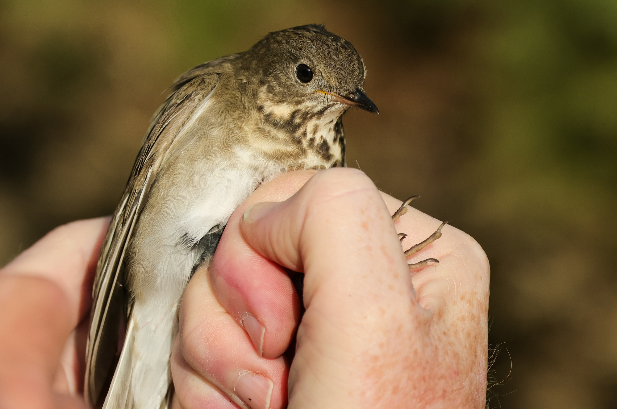 A female Greenland Wheatear O. o. leucorhoa on the west end of the Airfield on 5 Jun was caught and ringed (Richard & Rebecca Taylor). On 8 Sep, an adult female Greenland bird was caught by hand at 23:00hrs in the Old Light Manx Sheawater colony. Perhaps newly arrived, its weight was quite low, but after being kept overnight and ringed, it flew off strongly the following morning (Richard Taylor, Rosie Hall). The last bird of the year, on 27 Oct, was considered to be a first-winter male Greenland Wheatear (Chris Baillie).