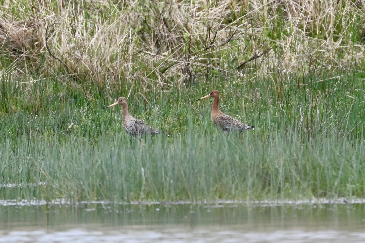 Black-tailedgodwit pair on Pondsbury. ©AndreaMay