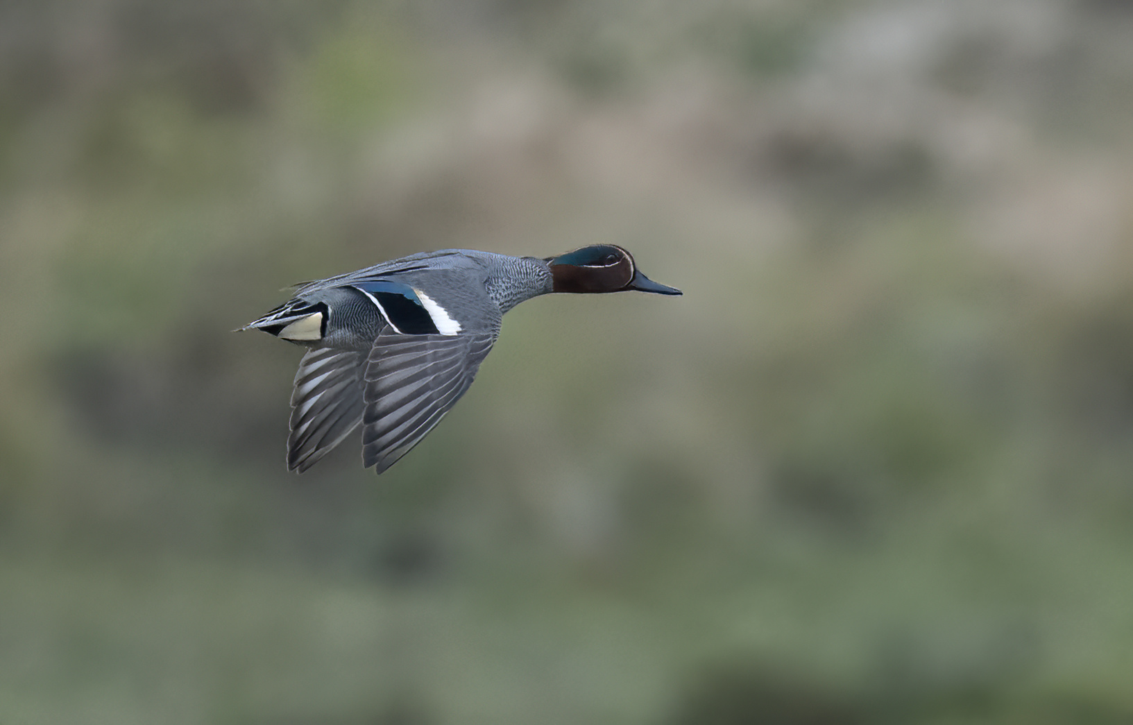We think our Eurasian Teal brood remined hidden today but one of the drakes was particularly showy!