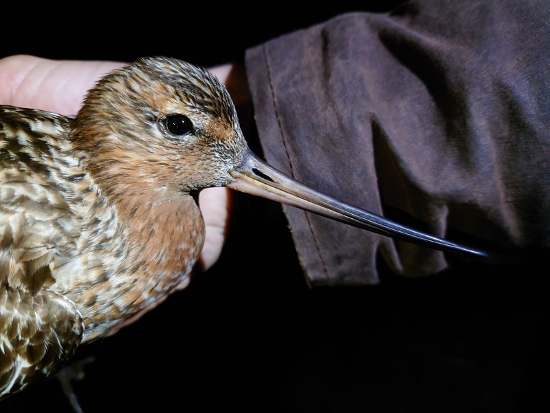 Bar-tailed godwit caught and ringed on nocturnal surveys. ©Thomas Weston
