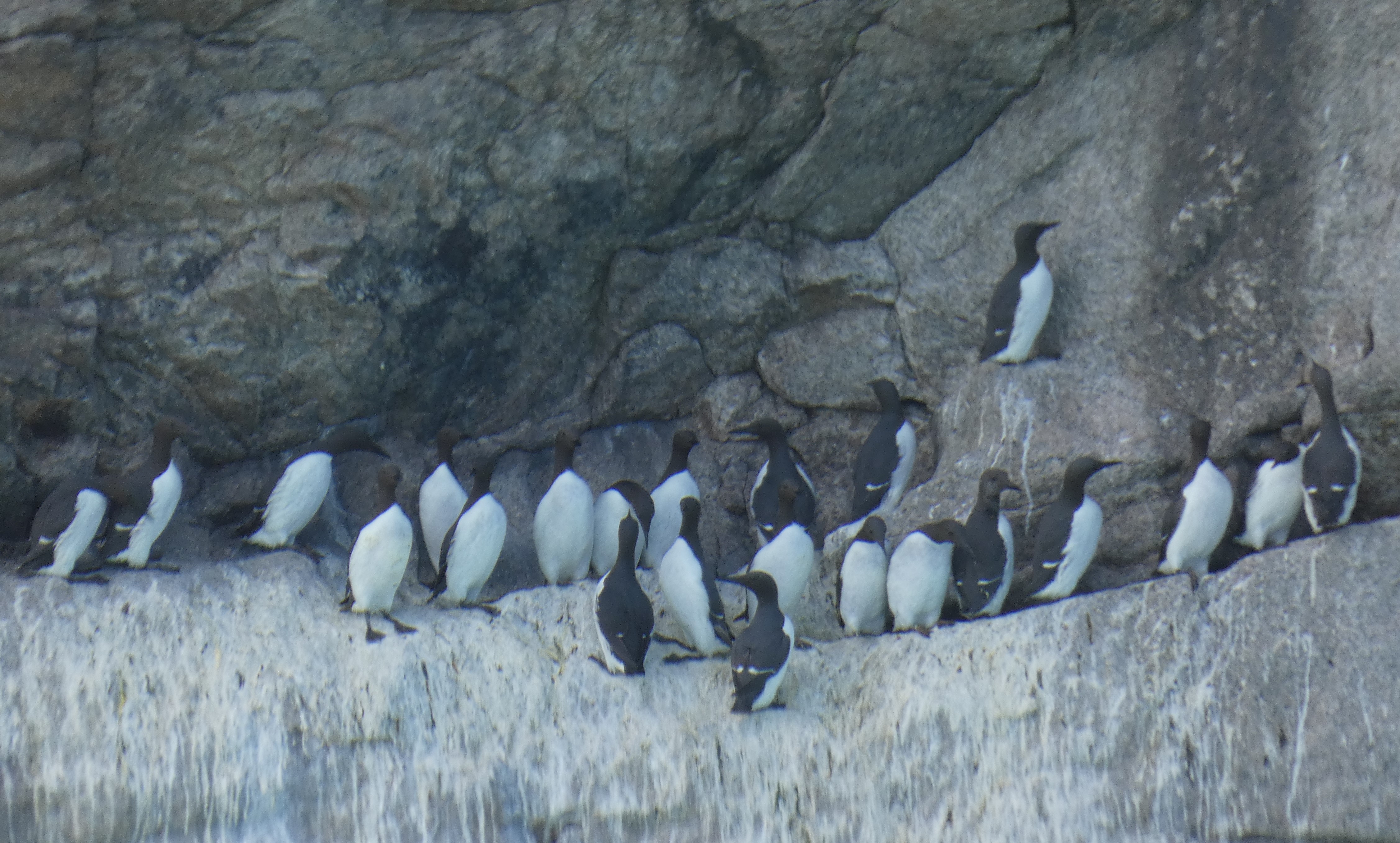 Thank you to the Oldenburg staff for allowing the Conservation Team to undertake a quick whole-island boat survey of the island. Sightings included 26 Oystercatchers, 22 Great-Black Backed Gulls, 22 Lesser-Black Backed Gulls, 74 Herring Gulls, 2 Raven, 2 Peregrines, 78 Puffins (see our recent highest counts for more information), 79 Seals, 47 Shags, 2 Gannets, 2 Rock Pipits, 126 Fulmar, 407 Razorbills (big undercount), 1726 Guillemots (big undercount), 85 Kittiwakes, a Common Sandpiper (island scarcity), and a Bar-tailed Godwit. A few photos from the trip below…