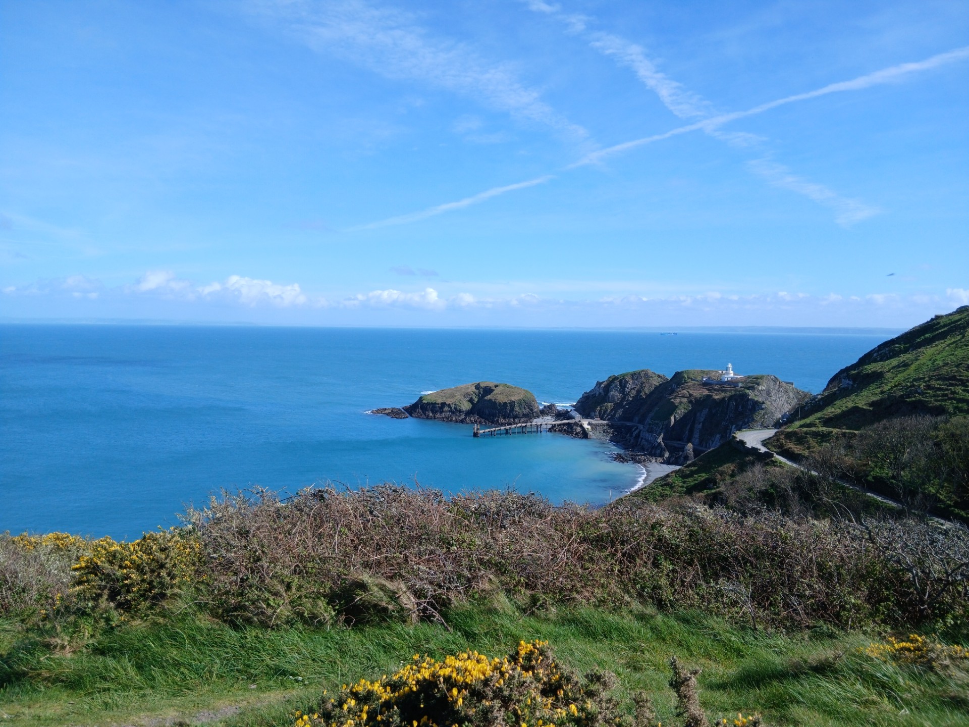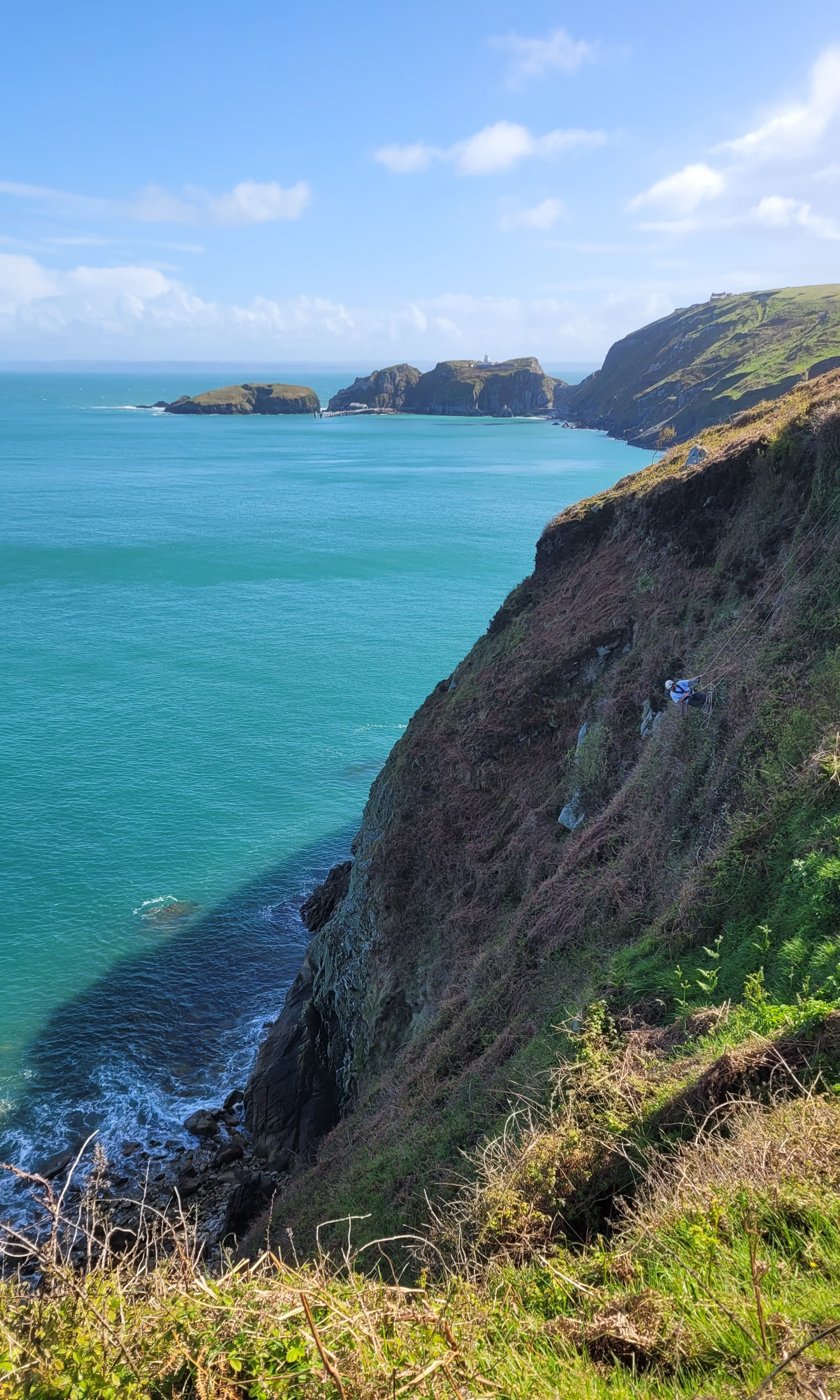 Shag, Greater Black Backed Gull, Oystercatcher, Guillemot and Gannet were all present, it was one of those days when you could just happily sit and watch the landing bay but we had to move on. As we passed along the South near Benjamins chair, I heard a Jackdaw heading out to sea followed by a Curlew calling from somewhere overhead but I didn't spot it. A Peregrine was wrestling with two Raven over by the castle and a fair size group of Razorbill rafted off the South coast.