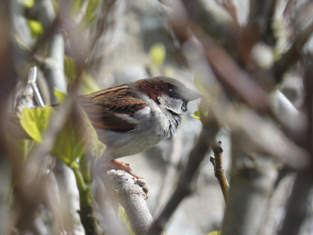 Census was a success, even in strong east winds. The Tims were one of the first seen people whilst Eleanor and I walked into Millcombe. Migrant wise, a single House Martin, 7 Swallows, 2 Sand Martins, 2 Common Redstarts – one in Millcombe and one at Benjamin’s Chair, 4 Willow Warblers, a Chiffchaff, single Blackcap, 3 ‘Greenland’ Wheatear, 3 nominate Wheatear, and a Cormorant passed by and were recorded. The wind was tough going but we found nice flocks of Linnets, Goldfinches, and the ‘normal’ pair of Chaffinches all in and around the area. A Manx Shearwater, Kittiwake, and feeding parties of Herring Gulls and Lesser-Black Backed Gulls were noted. However, the most unusual species was a Rock Pipit, a species we have been a bit concerned about due its absence around the island during census, or on walks. The only pic was this House Sparrow in the wind.