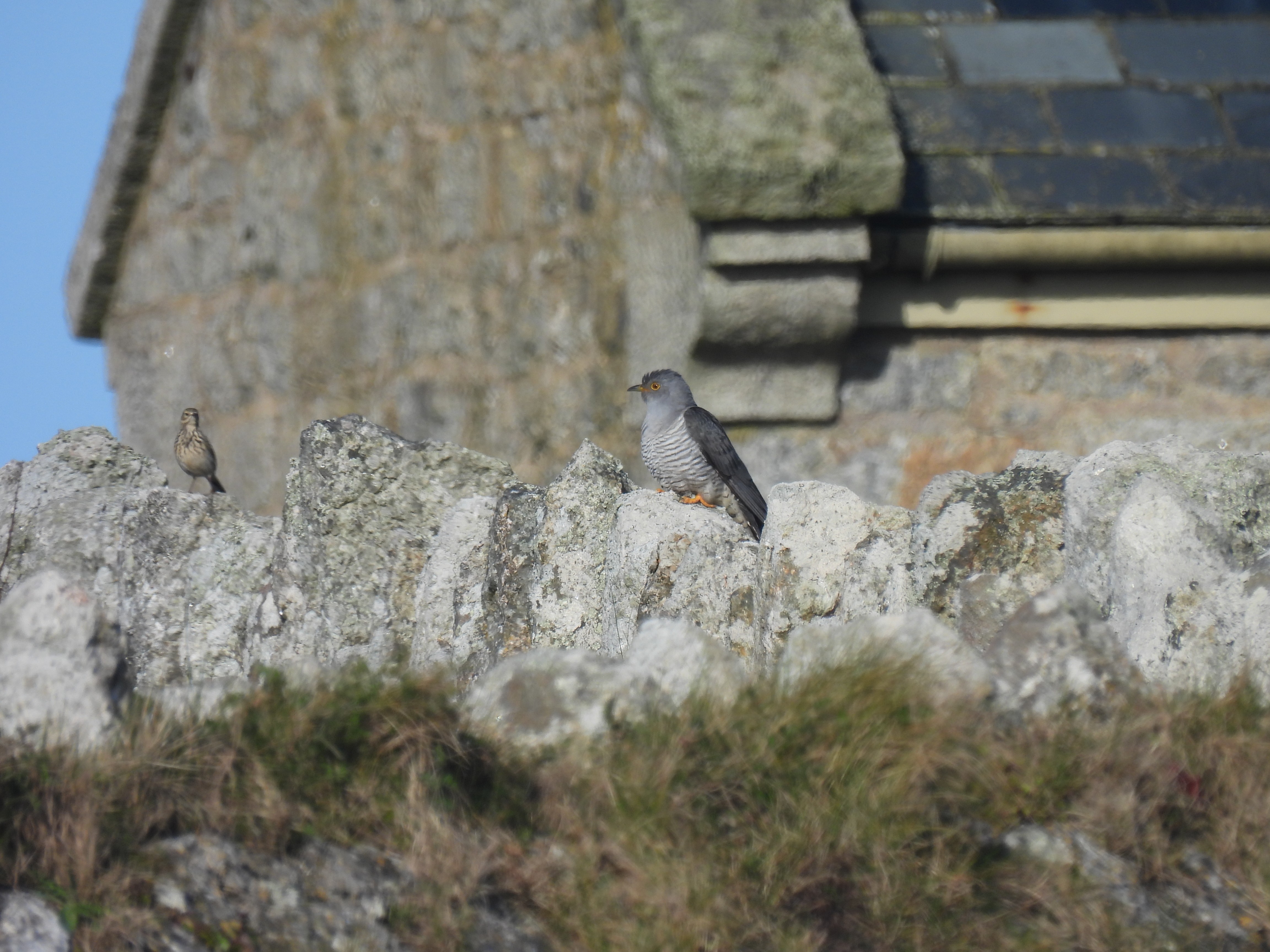 Large numbers of Linnet were spotted around the gorse bushes and the Black Headed Gull is still here, wandering alone around the village. Over by Old light, we spotted a first for the year. A lone Cuckoo being mobbed by Meadow pipits.